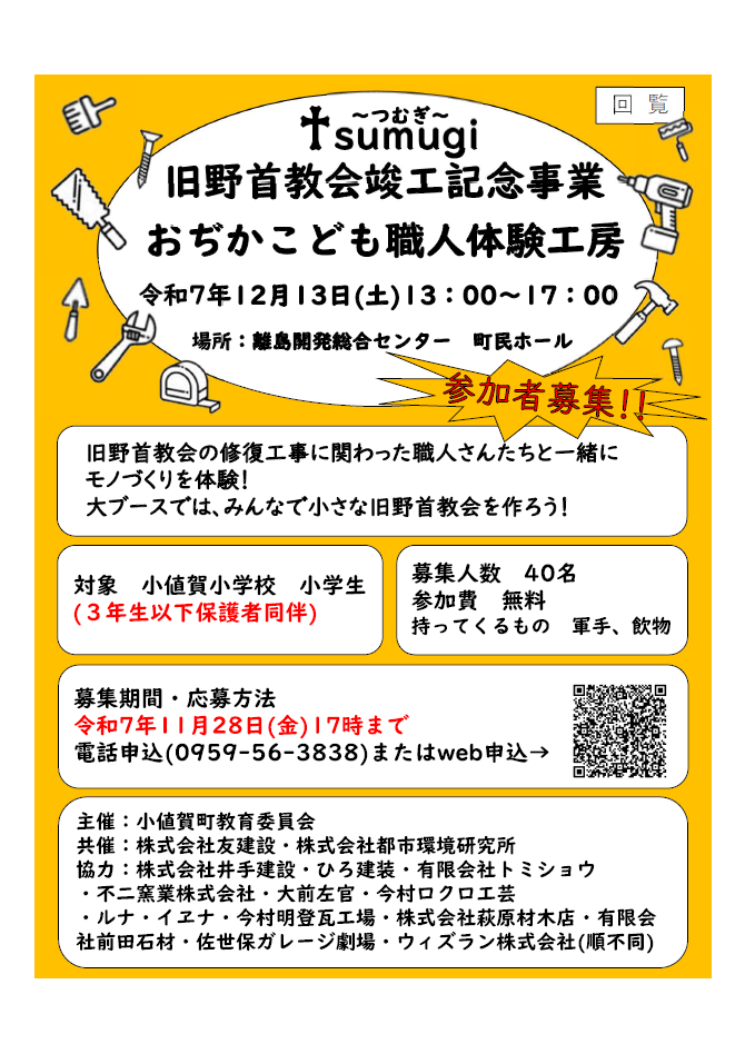 令和7年12月13日開催します!!✨おぢかこども職人体験工房✨